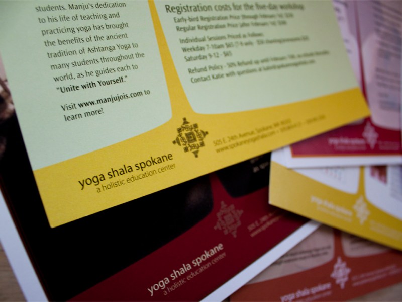 The first yoga studio I taught for was also a brand new studio located in downtown Spokane, WA. She was in need of fresh logo identity and promotional materials. The twist image was inspired by a piece of jewelry and meant to represent the various shapes and contours of the human body.
